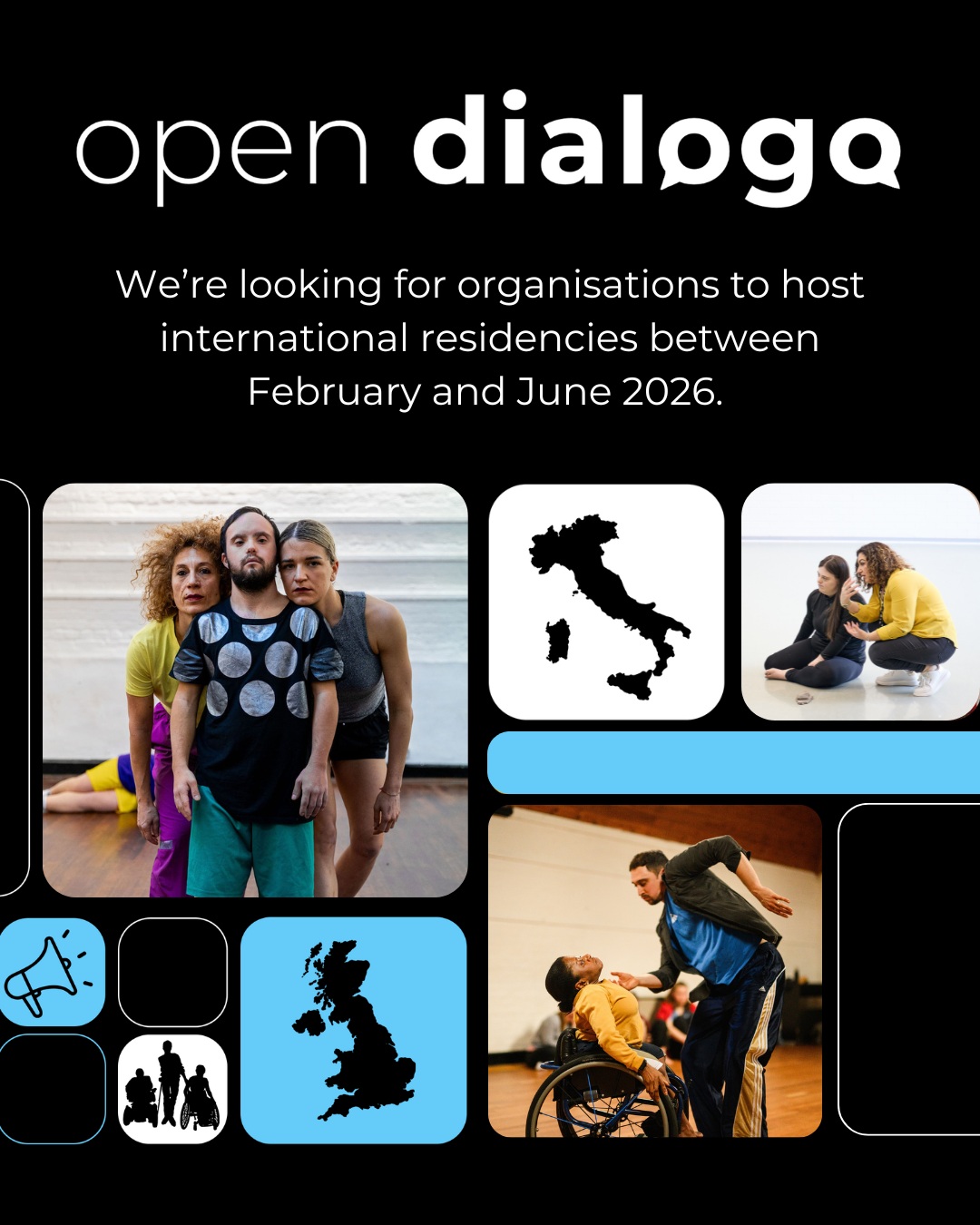 Manifestazione di interesse per la selezione delle residenze d’artista per il progetto OPEN DIALOGO – 3a Edizione – Programma di residenze bilaterali Italia / Regno Unito a favore della cultura dell’accesso degli artisti ed operatori della Danza con disabilità – Convenzione n. 52 del 12 dicembre 2024 tra il MiC / DGS e il British Council